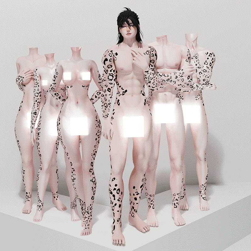 Leopard Veil is a high-resolution, full-body skin tattoo texture that wraps your avatar in an elegant cascade of stylized leopard markings — blending wild beauty with refined digital artistry.